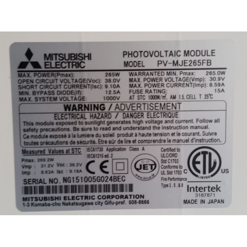 العلامات: Mitsubishi, لوح شمسي, 265W